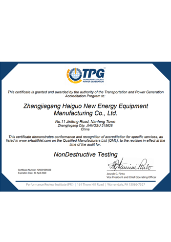 公司取得了美國ABS、法國BV、中國CCS、挪威DNVGL、韓國KR、英國LR、日本NK、意大利RINA等全球八大船級社的工廠認證證書,建立了完善的產品質量管理體系。先后獲得了美國API20B資質證書、API6A資質證書、APIQ1體系證書、TPG的NDT認證證書、TPG 熱處理認證證書、歐盟PED等認證證書,同時也通過了一些國際客戶具有高度專業要求的資格認證。